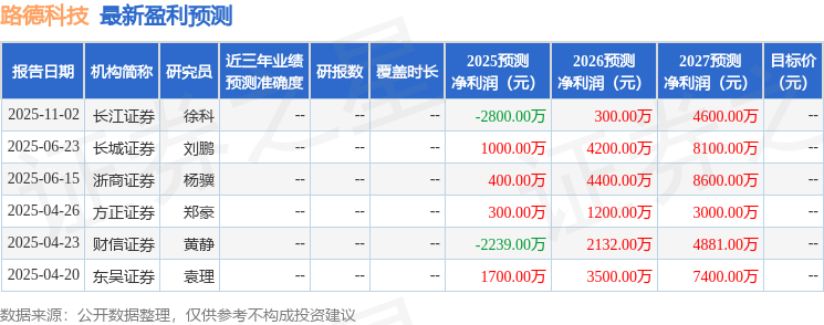 路德科技2025年三季报显示,前三季度公司主要经营收入2.54亿元,同比上升14.15%;归母净利润-1612.68万元,同比下降368.25%;扣非净利润-1879.16万元,同比下降255.42%;其中2025年第三季度,公司单季度主营收入1.07亿元,同比上升38.94%;单季度归母净利润-305.3万元,同比上升38.3%;单季度扣非净利润-449.47万元,同比上升18.86%;负债率49.5%,投资收益6.12万元,财务费用1417.07万元,毛利率21.72%。